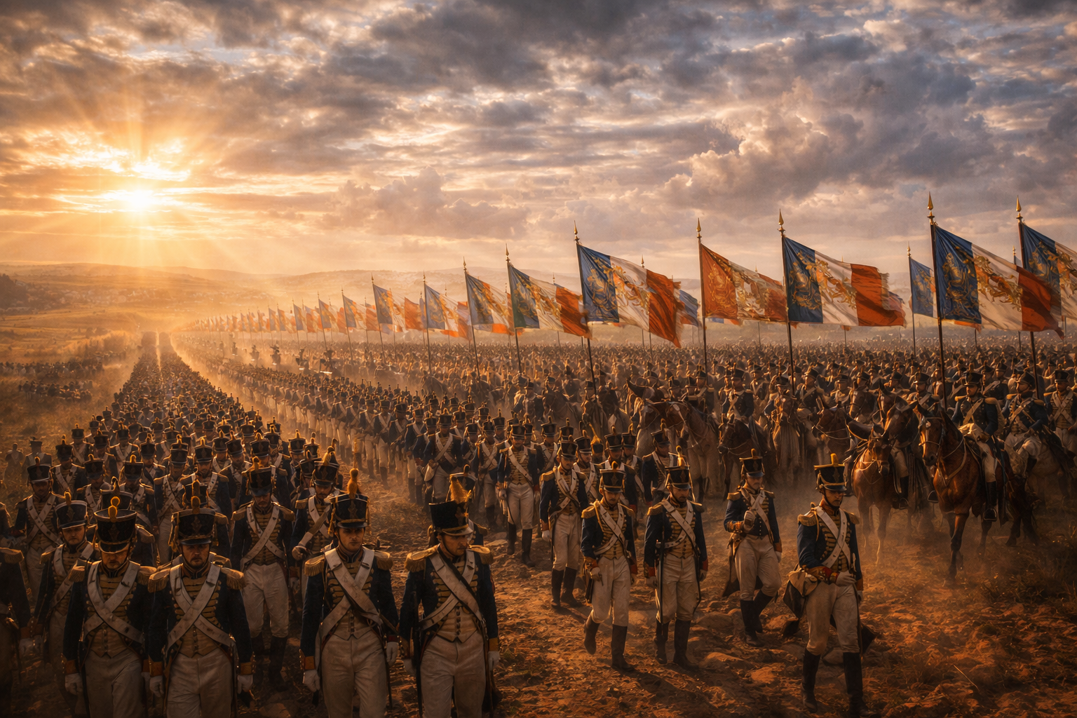 보병, 기병, 포병이 하나로 뭉친 작은 군대들이 독립적으로 움직이다가, 결정적인 순간 한 점으로 모입니다. 이 유연함이 유럽의 구식 군대들을 무너뜨렸습니다.