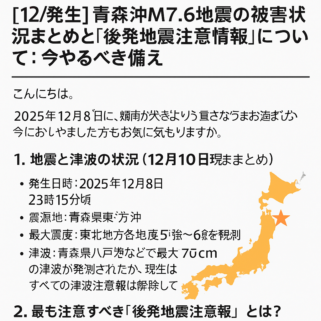 - 쓰나미: 아오모리, 이와테, 홋카이도 연안에 한때 쓰나미 주의보가 발령되었으며, 최대 70cm의 해일이 관측되었습니다. (현재는 해제됨)